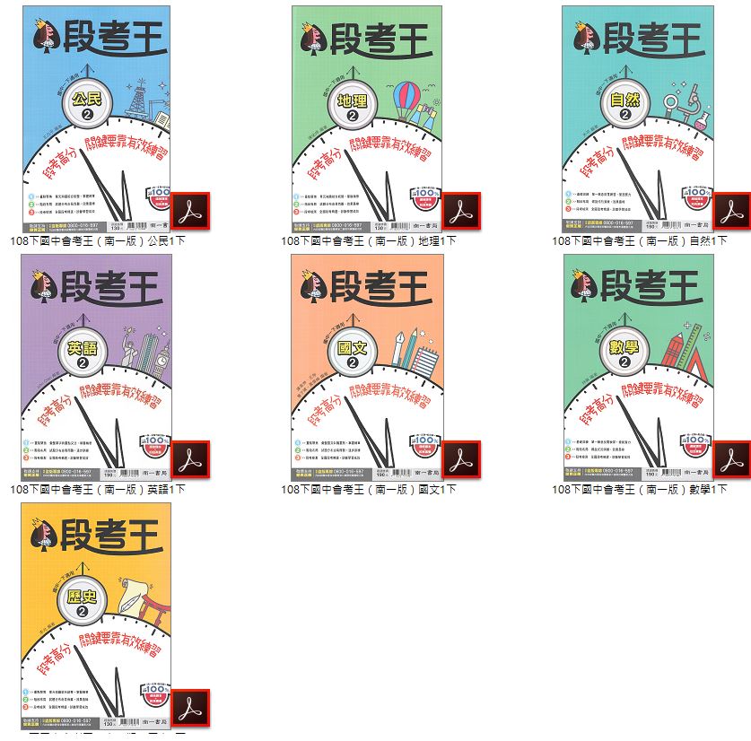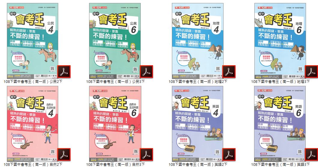 108學年下學期 國中會考王評量卷 南一版 1-3年級 全科目 卷類光碟DVD版