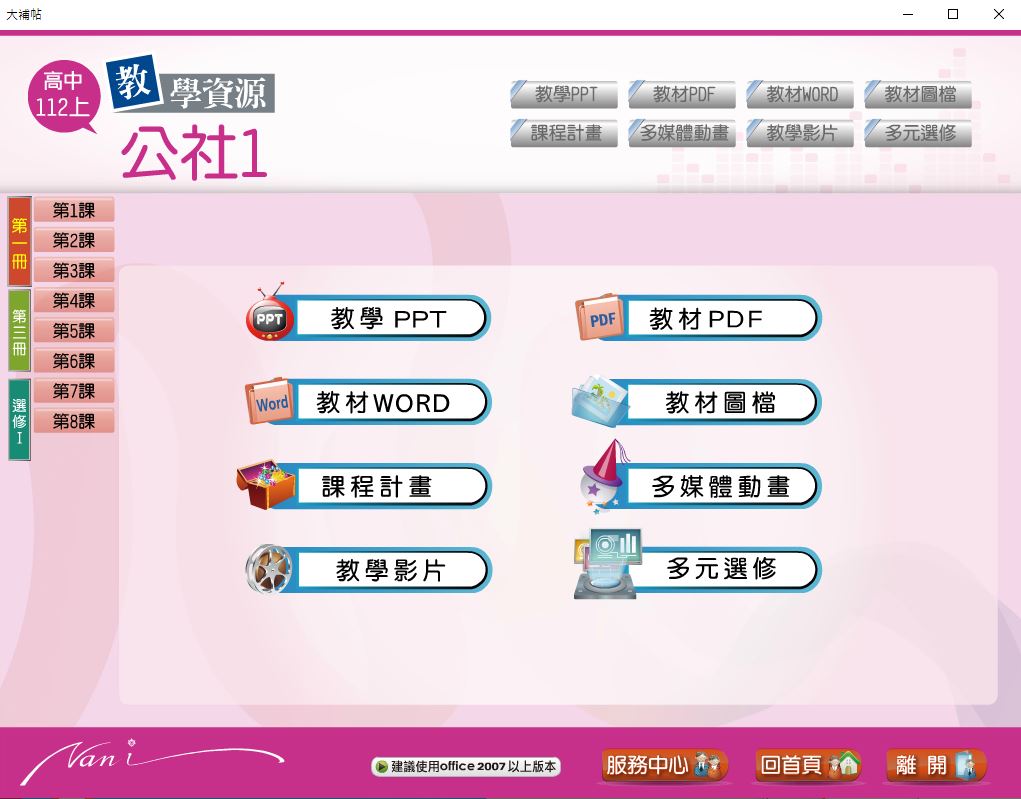 112學年上學期 高中大補帖 南一版 公民與社會科(一、三、選修I) 教學光碟