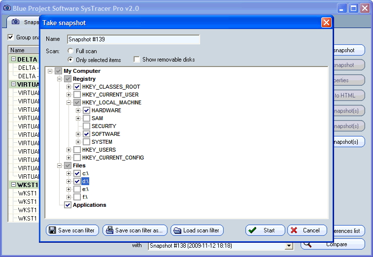 • Blue Project Software Systracer v2.8 x64 英文正式版(文件夾/文件列表及註冊表作快照的工具並把快照輸出為HTML軟體)