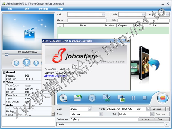 • Joboshare DVD to iPhone Converter v3.0.8.0428 英文正式版(音視頻轉換軟體)